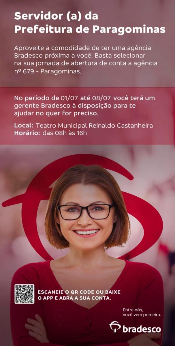 De 01 a 08/07/2025, a equipe do Bradesco prestará atendimento no Teatro Municipal Reinaldo Castanheira, das 8h às 16h, sem intervalo para o almoço.